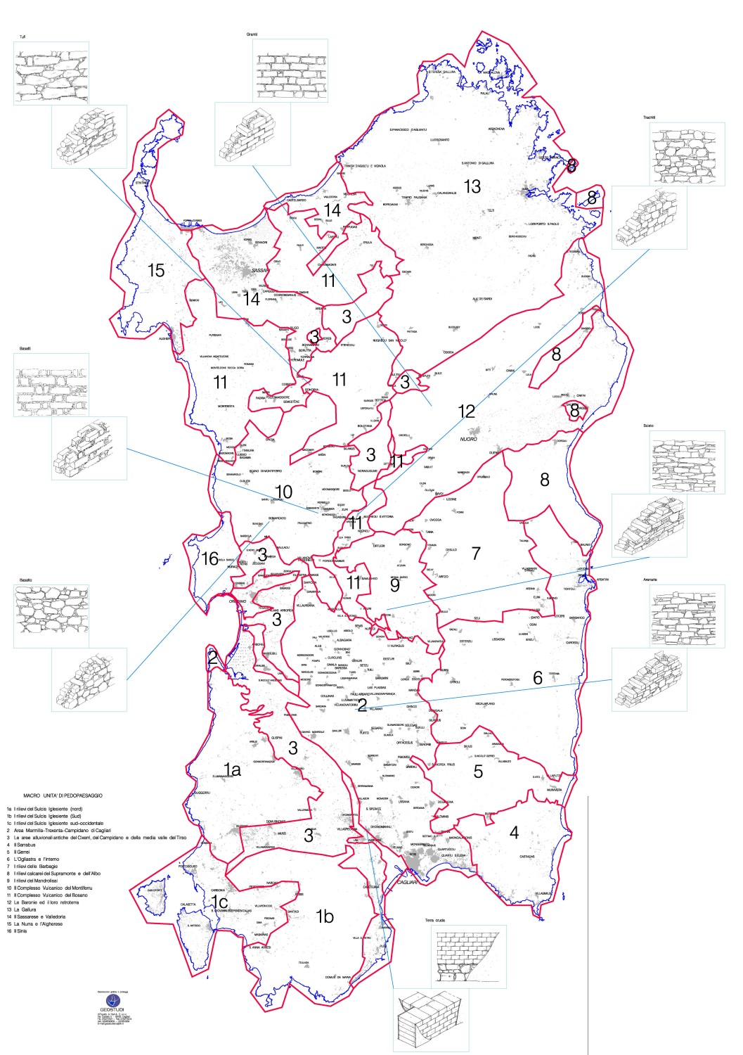 Su questa descrizione e sui suoi areali è stata proiettata una “carta dei tipi e delle culture costruttive” della Sardegna, con riferimento particolare alla costruzione muraria intesa come emblematicamente rappresentativa dell’intero patrimonio delle culture costruttive locali.